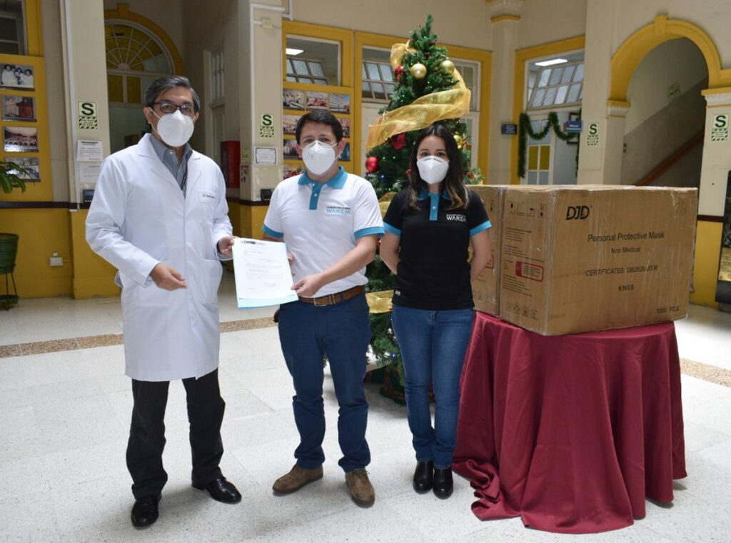 El 03 de diciembre de 2020, Ronal Sotomayor y Yasmine Karina Sotomayor Torres, representantes de #Warem, realizaron la entrega de 2000 mascarillas KN95, junto al Dr. Alberto Romero Guzmán, Presidente del Comité de Donaciones del Instituto Nacional de Salud del Niño – Breña.